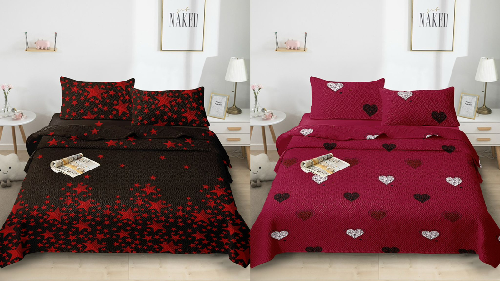 Cuvertura de Pat Matlasată cu 2 Fețe de Pernă