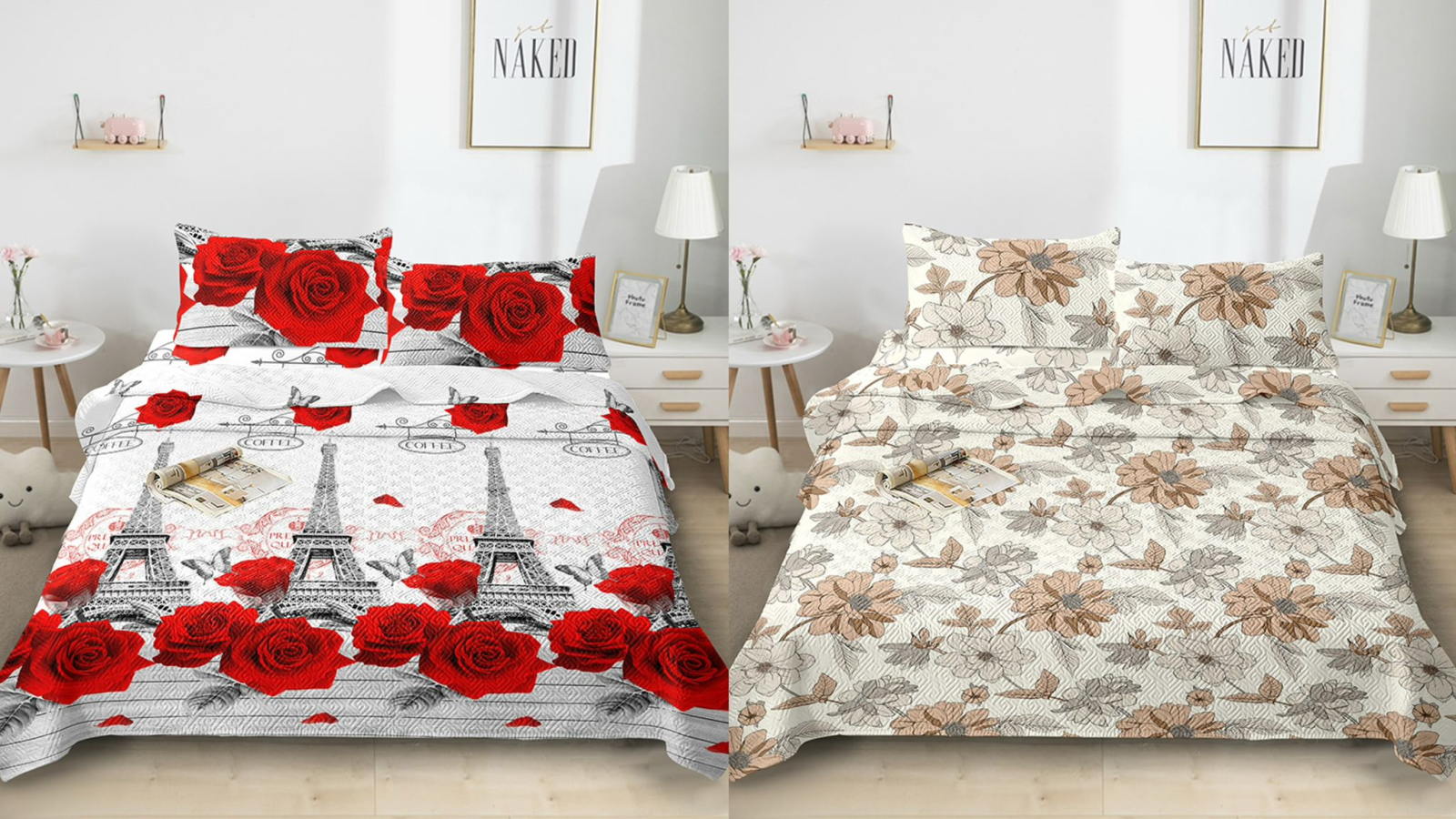 • Imprimeul fețelor de pernă poate fi diferit față de prezentarea din fotografie, deoarece materialul este debitat la rând, așadar poate fi oricare parte de pe fața cuverturii.