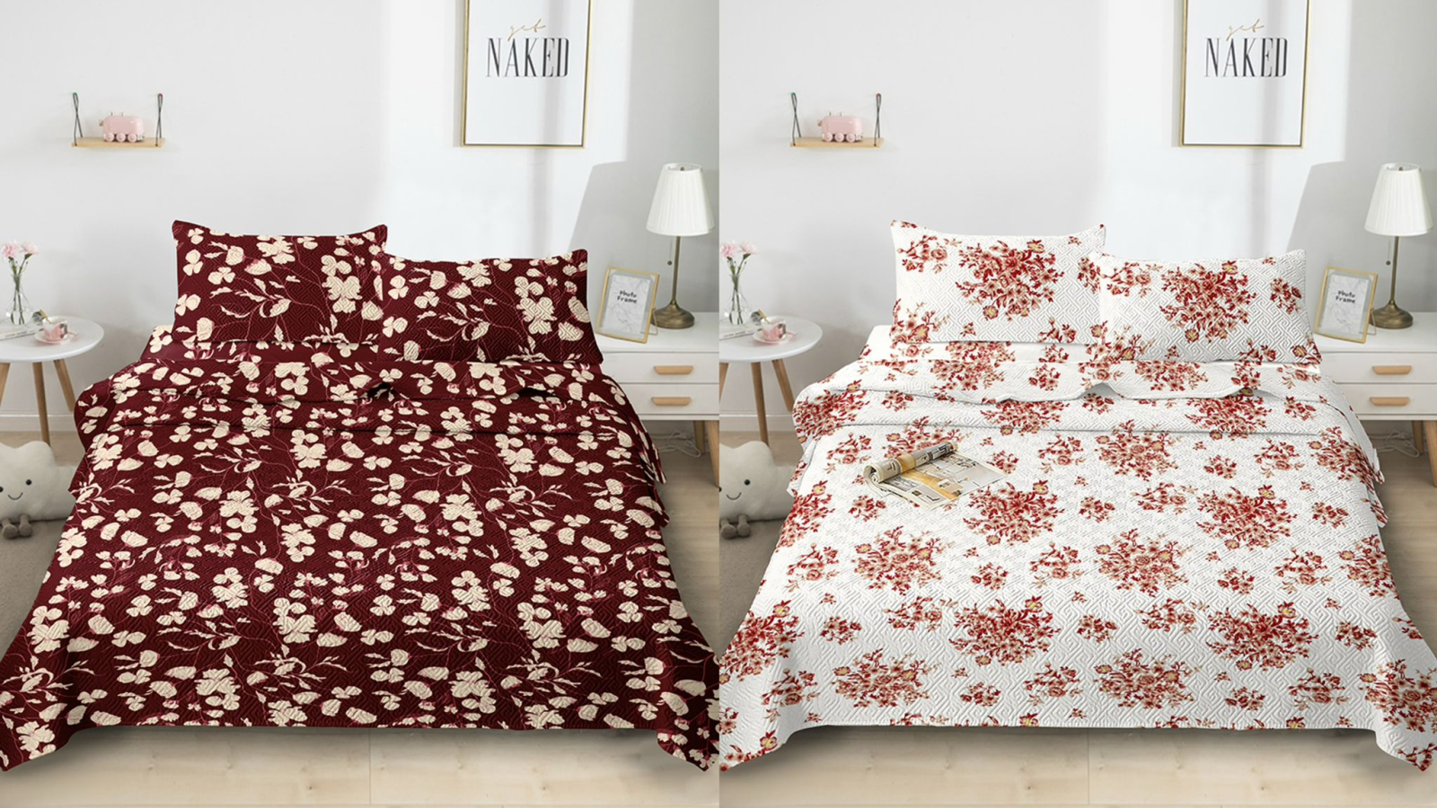 Cuvertura de Pat Matlasată cu 2 Fețe de Pernă