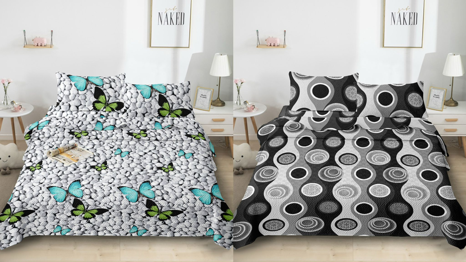 Cuvertura de Pat Matlasată cu 2 Fețe de Pernă