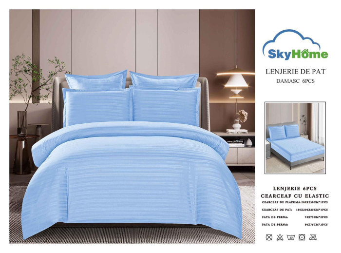 Lenjerie damasc 6 piese cu elastic