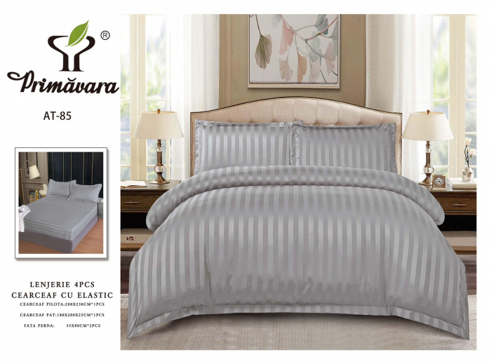 Lenjeria este confectionata din bumbac damasc satinat  cu o textura fina, moale si foarte placuta la atingere.