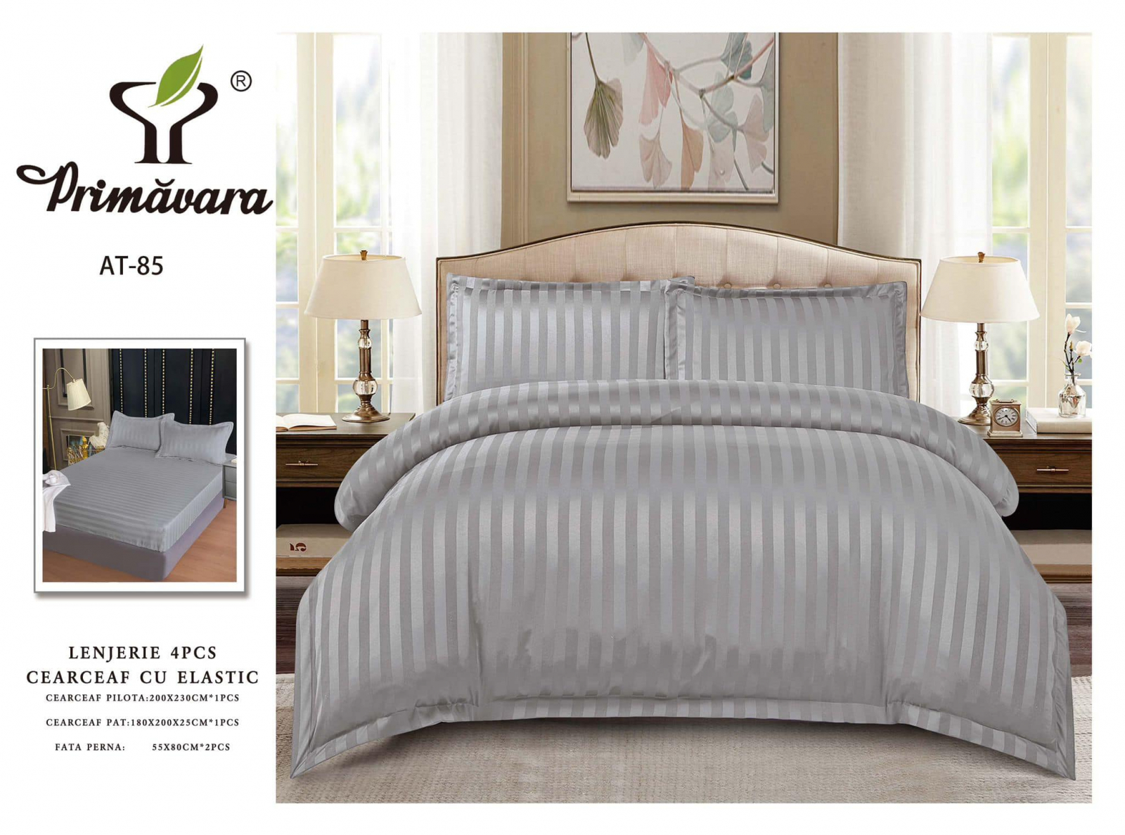 - cearsaf de pat: 230 x 220 cm ±10cm cu elastic ( intins )