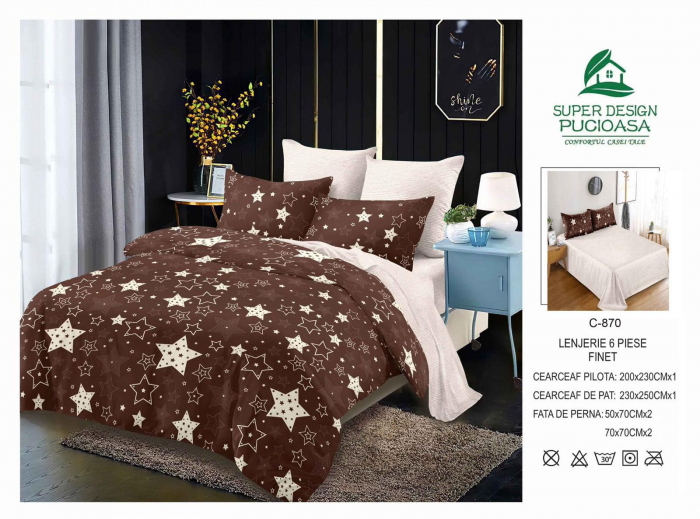 Materialul din care este confectionată lenjeria este de calitate superioara cu o textură fină, moale și foarte placută la atingere.