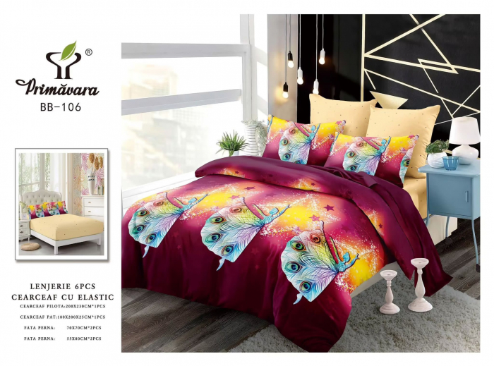 - cearsaf de pat: 180 x 220 cm ±10cm - cu elasticCompozitia materialului: 80% bumbac, 20% poliester