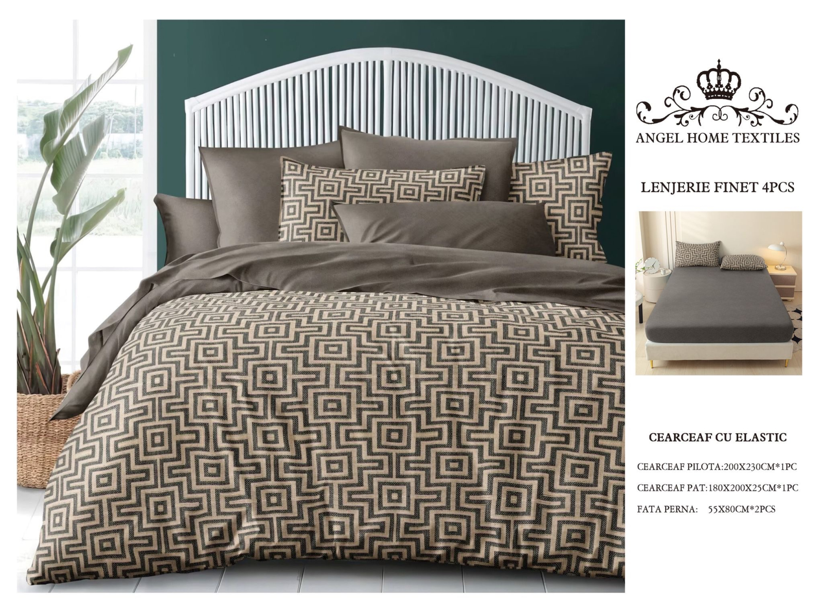 1 x Cearceaf de pat: 180 x 200 cm;- CU ELASTIC