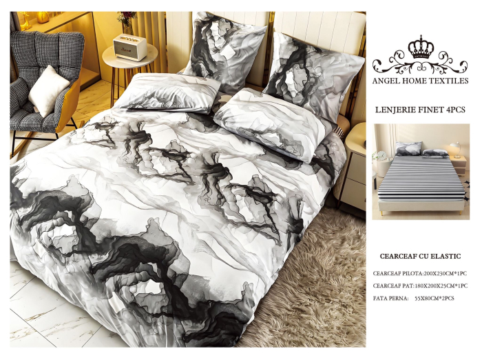 1 x Cearceaf de pat: 180 x 200 cm;- CU ELASTIC
